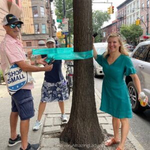 With the help of many fantastic volunteers, T.E.A.L.® was able to tie ovarian cancer awareness ribbons on trees on Myrtle Avenue, 5th Avenue, and Flatbush Avenue in Brooklyn in collaboration with Turn the Towns Teal® on September 8th, 2021. The Myrtle Avenue, 5th Avenue, and North Flatbush Avenue BIDs joined the foundation in spreading ovarian cancer awareness and promoting the National T.E.A.L.® Walk/Run/Ride in the community.