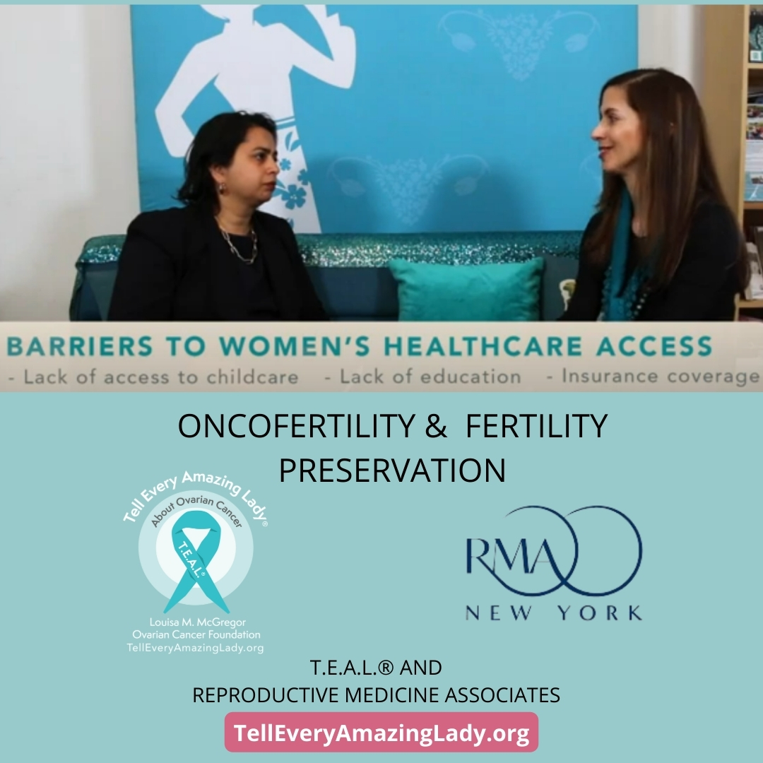 T.E.A.L.® is proud that on June 24, 2024, two of our initiatives, our Reproductive Medical Associates (RMA) of NY collaboration brochure and our Barriers to Women’s Health video as part of our T.E.A.L.® Couch video series were launched! We thank RMA for collaborating on this important oncofertility and fertility preservation brochure project and we thank Golda Arthur from Overlooked Podcast (https://overlookedpod.com/) for being a part of our T.E.A.L.® Couch video series and talking with us about how to overcome barriers to women’s health. All of these topics are important and understanding them can help us take preventative measures for the fight against ovarian cancer. You can find our RMA brochure here and the link to our video series here!
