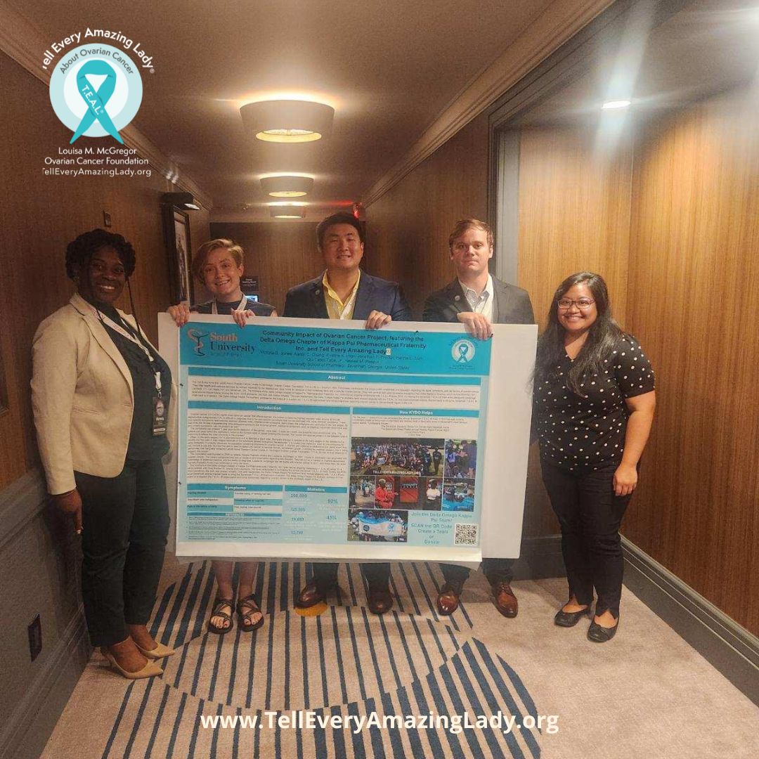 The conference included a segment for collegiate brothers to present a poster sharing their recent research, and community projects they have worked on within the last two years. The South University brothers created a poster displaying support for T.E.A.L. ® and promoting ovarian cancer awareness. The poster was presented among pharmacists across the U.S. in various fields of study including oncology. This conference was a great opportunity to promote the upcoming Savannah T.E.A.L.® Walk event hosted by members of South University plus to promote awareness month.