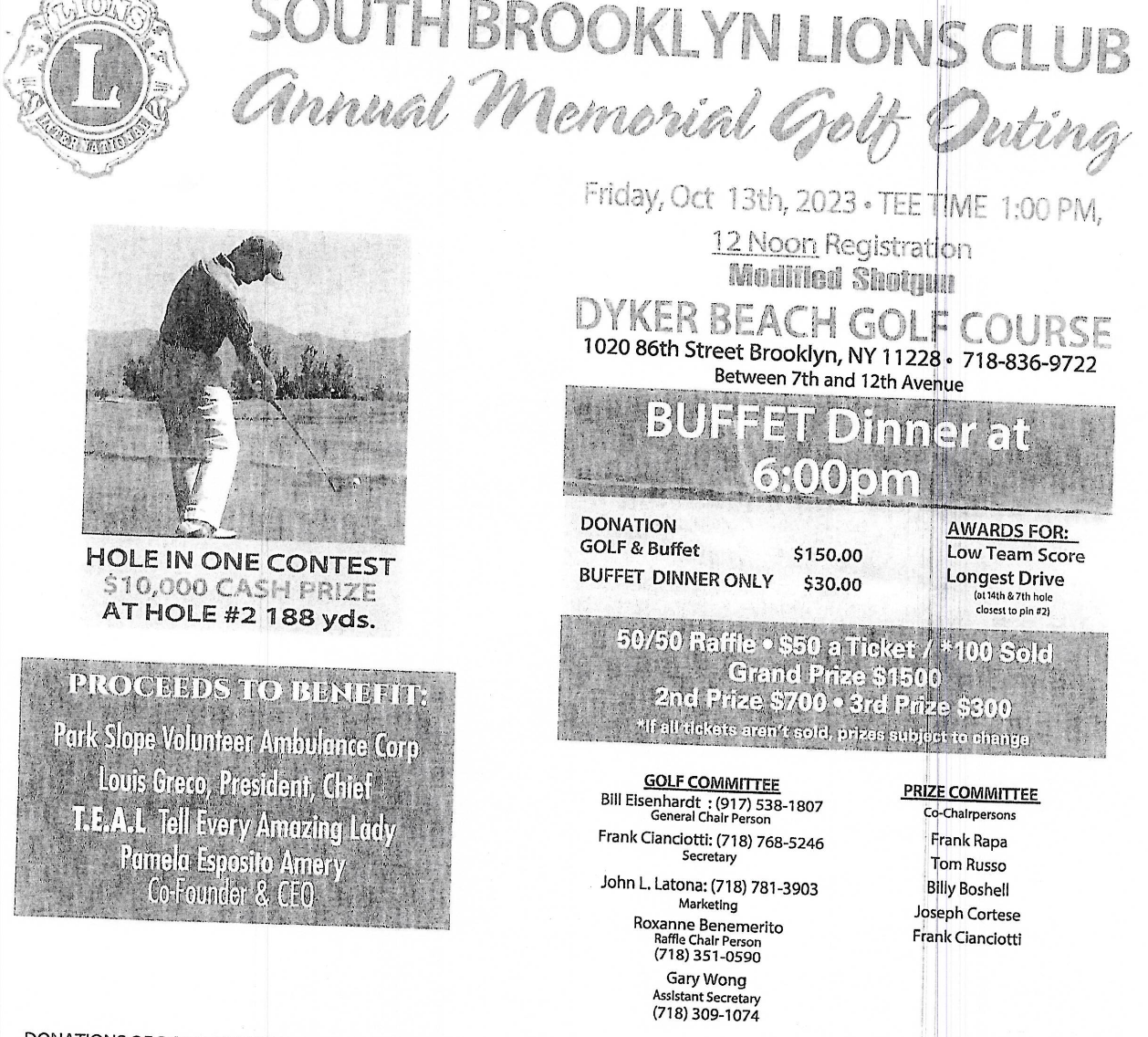 T.E.A.L. ® is a beneficiary of the South Brooklyn Lions Club Annual Memorial Golf Outing