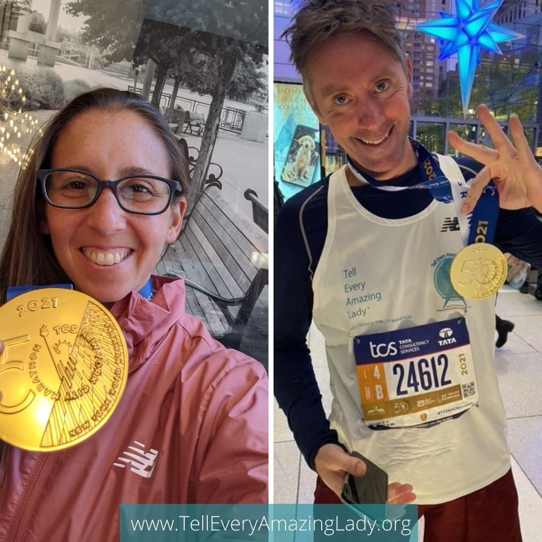 Team Tell Every Amazing Lady® was thrilled to cheer our charity runners, Dennis and Melissa, on as they ran the 26.2 mile race on November 7th, 2021. Staff and supporters spotted the runners in Bay Ridge, Brooklyn, where we spread ovarian cancer awareness with handheld signs and teal pom poms.